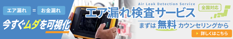 今回の食品工場の事例のように、省エネ対策を一通り行っていても、実はエア漏れが大きなムダの原因になっていることは珍しくありません。