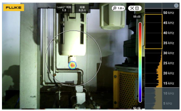 FLUKE社の超音波カメラは、エア漏れによって発生する超音波をリアルタイムで画像化します。
