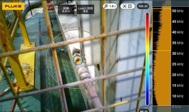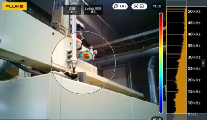 補足:大きな機械の上部や、安全策の中など、普段の稼働中には近づけない箇所から強い漏れが多数ありました。