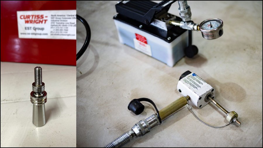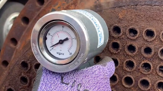 チューブ1本1本に圧力をかけ、パンクしている(穴のあいている)チューブを迅速に特定します。チューブの両端に特殊な専用工具をセットし、圧を張ります。チューブに穴が開いていれば、圧力は保持できません。圧力が保持できればパンクしていないということになります。