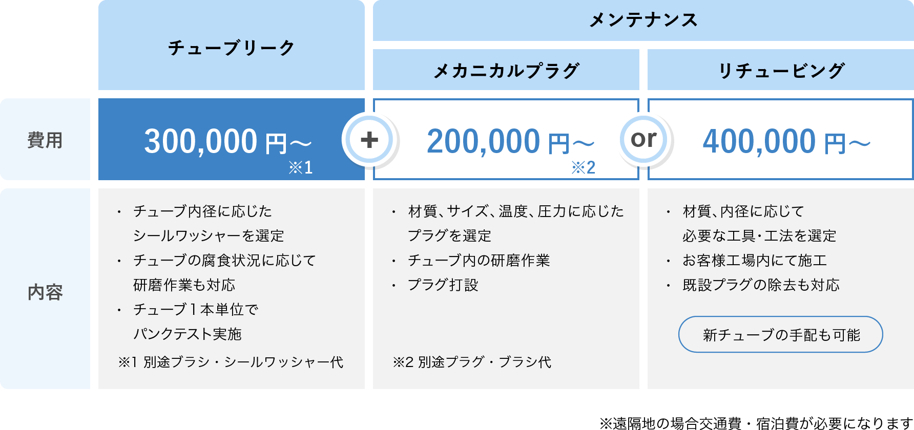 お客様工場内にて施工し、チューブバンドル全体を更新するよりも工期が短縮でき、低コストで対応できます。
